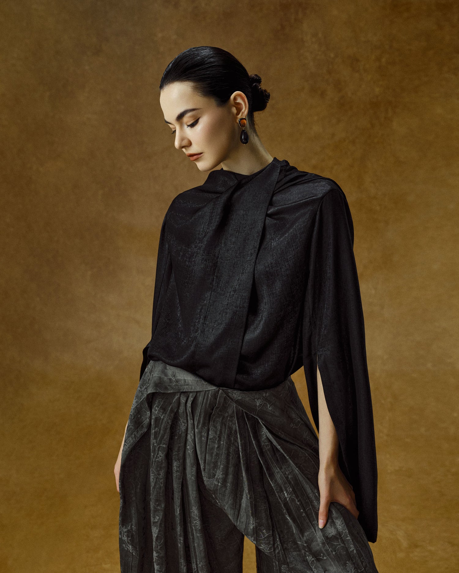 Cowl Neck Slit Sleeve Top